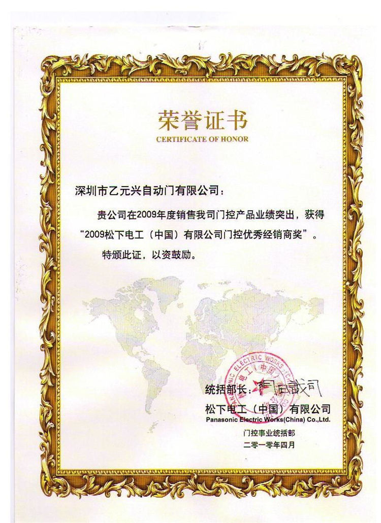 • 松下技術(shù)服務(wù)優(yōu)秀榮譽證書